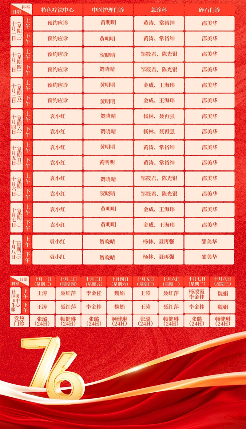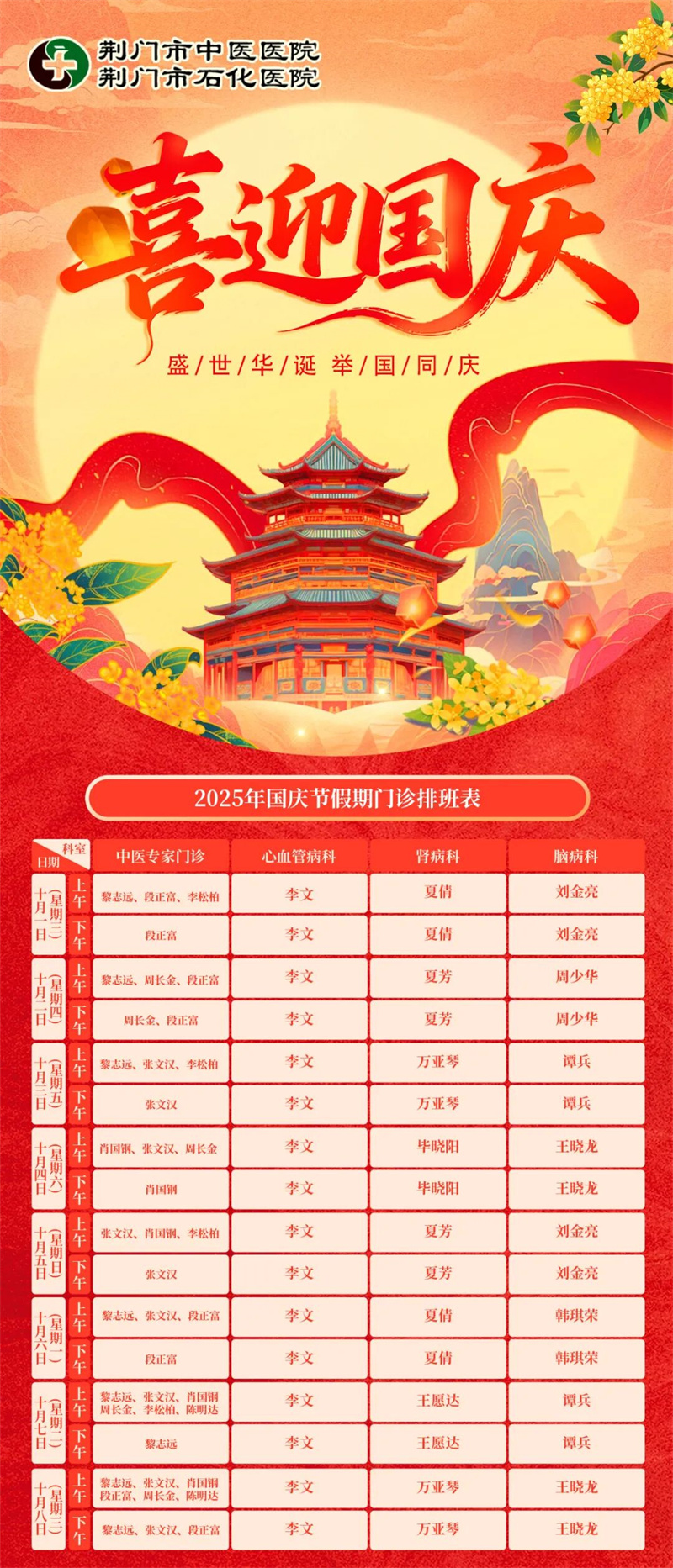 通知 | 荊門市中醫(yī)醫(yī)院2025年國慶節(jié)假期排班表→