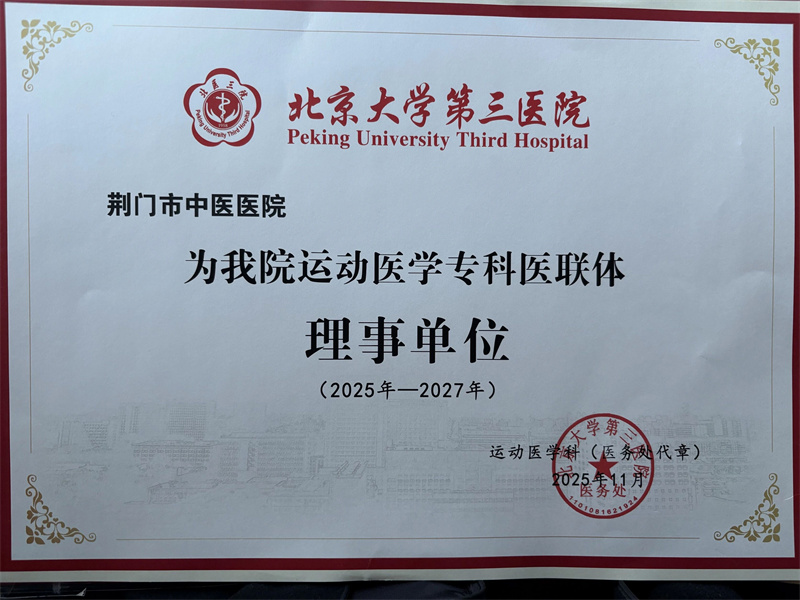 近日,北京大學(xué)第三醫(yī)院運(yùn)動(dòng)醫(yī)學(xué)專科醫(yī)聯(lián)體成立大會(huì)在北京順利召開。會(huì)上,荊門市中醫(yī)醫(yī)院被正式授予“北京大學(xué)第三醫(yī)院運(yùn)動(dòng)醫(yī)學(xué)??漆t(yī)聯(lián)體理事單位”,標(biāo)志著我院在骨科運(yùn)動(dòng)醫(yī)學(xué)專業(yè)的建設(shè)水平獲得了國家級(jí)權(quán)威機(jī)構(gòu)的高度認(rèn)可。